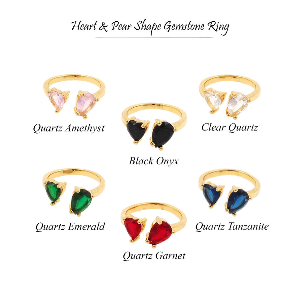 925 Sterling Silver Quartz Tanzanite Pear and Heart Shape Gemstone Prong Setting Adjustable Band Ring Wedding Gemstone Rings