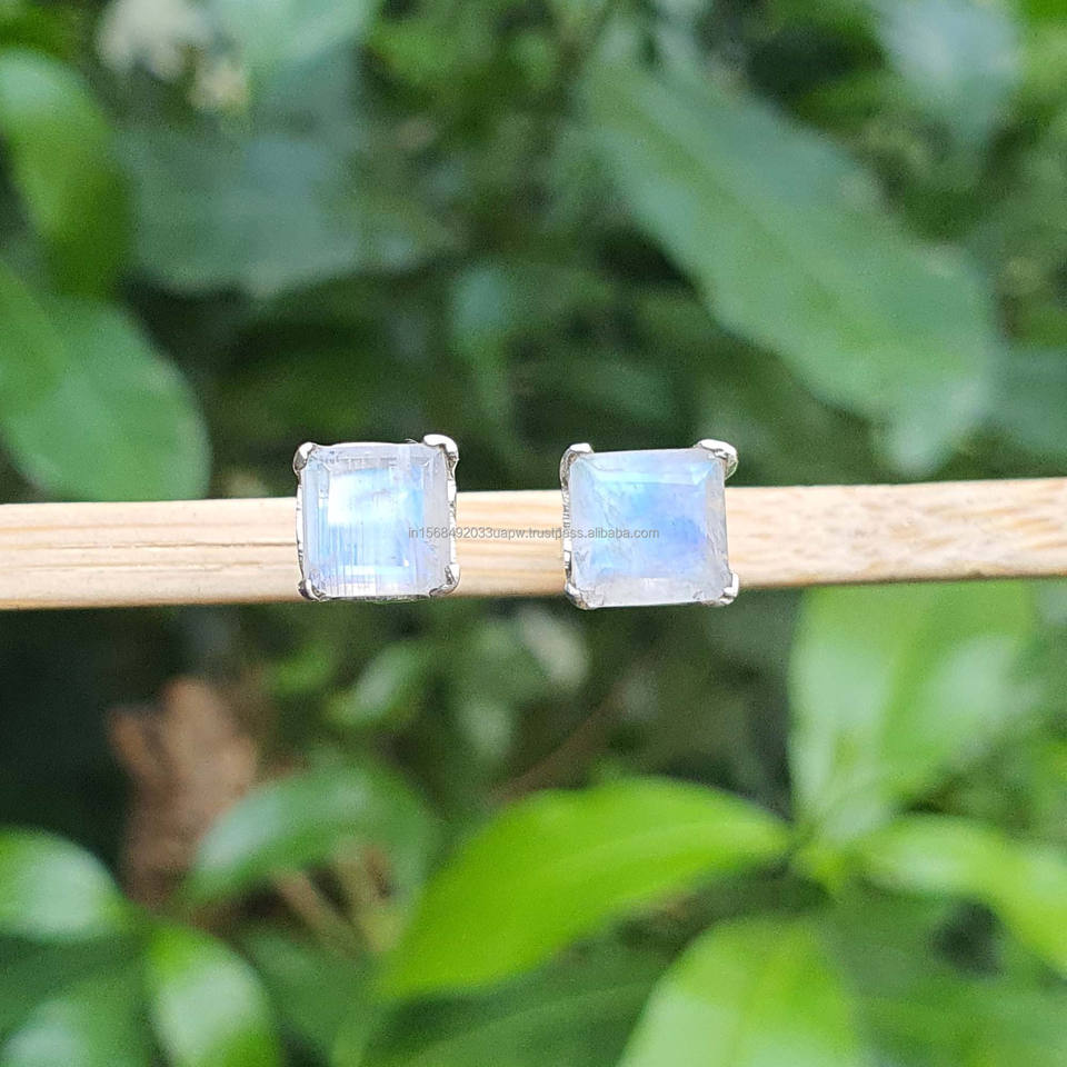 Product Name:Natural Rainbow Moonstone 925 Sterling Silver Stud Earrings