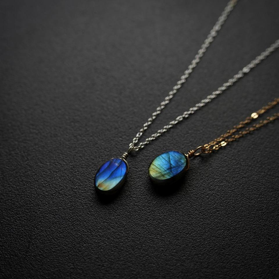 925 Sterling Silver Raw Labradorite & Crystal Trendy Unisex Pendant Necklace with Gold Polish for Leo & Scorpio Astrology Fans