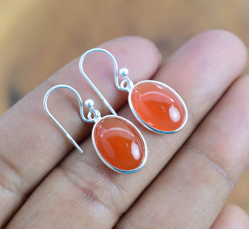 925 Sterling Silver Handmade Designer Earrings Red Carnelian Gemstone Hook August Birthstone Party Jewelry Drop Earrings for Her
