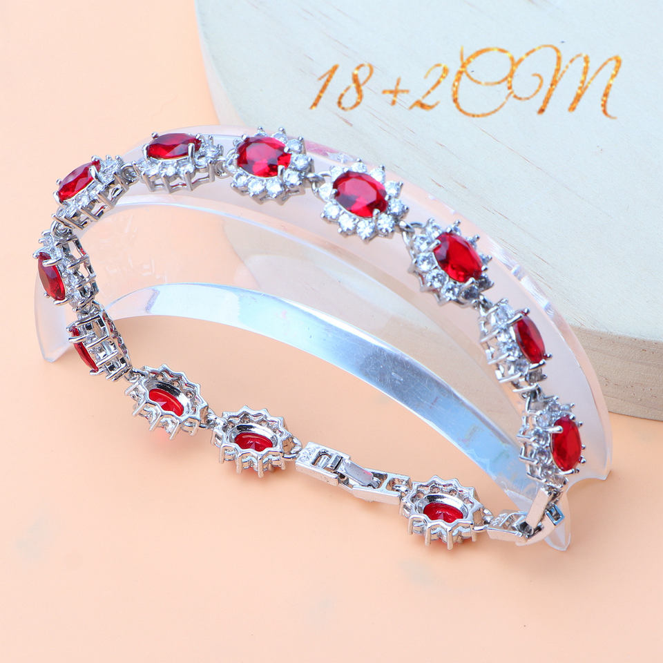 925 Sterling Silver Red Ruby Jewelry Sets for Women White Zircon Bridal Wedding Earrings Ring Bracelet Pendant Necklace Set