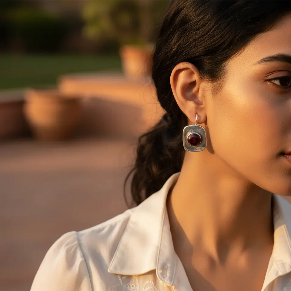 925 Sterling Silver Red Ruby Zircon Gemstone Stud for Women Trendy Flower Geometric Pattern for Daily Wear Engagement Gift