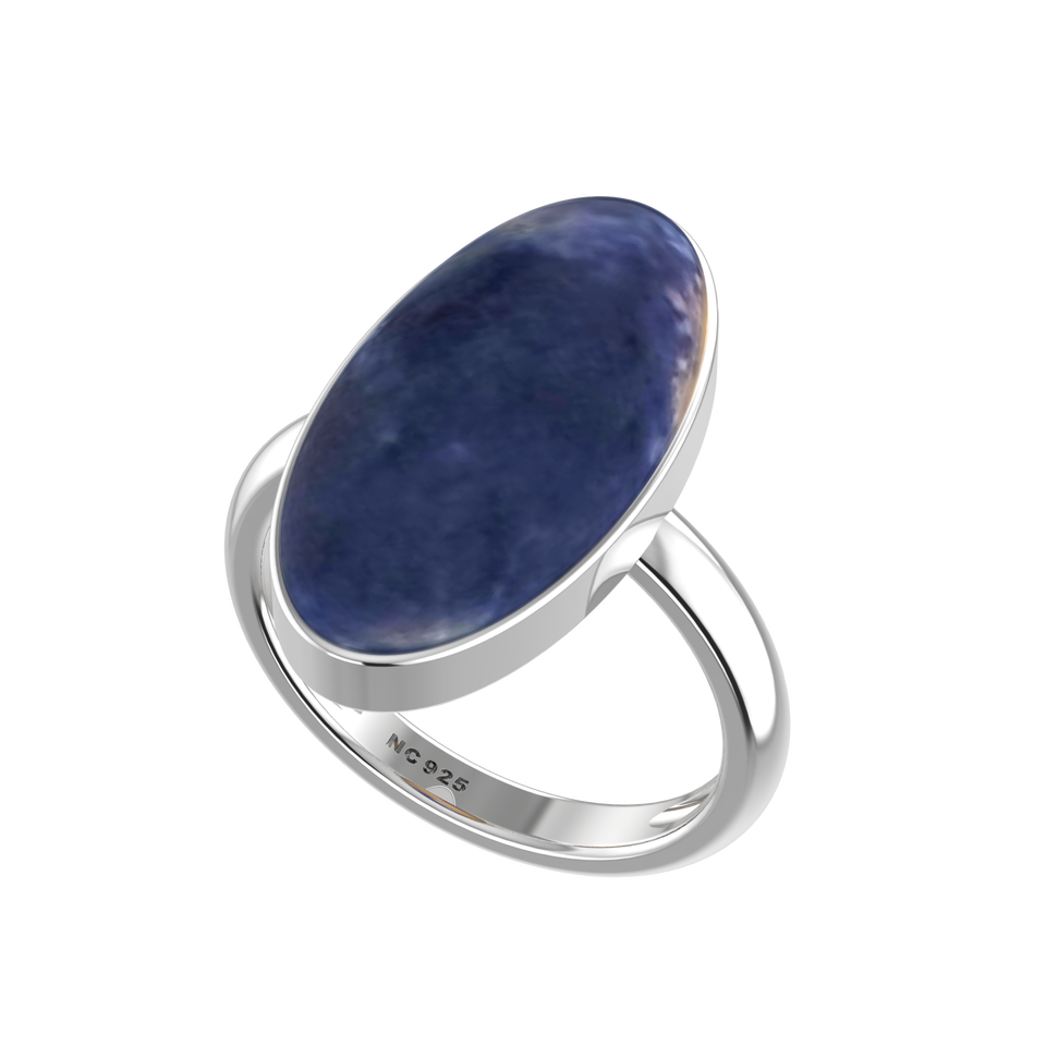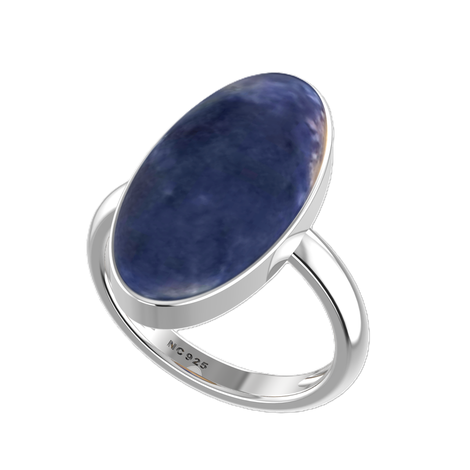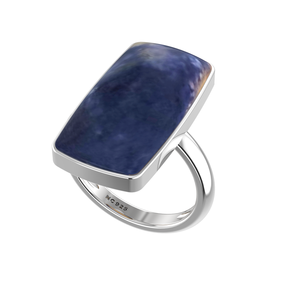 925 Sterling Silver Resizable Ring Bezel Setting Sodalite Gemstone Mix Shapes Classic Wedding Party Trendy Fashionable Unisex