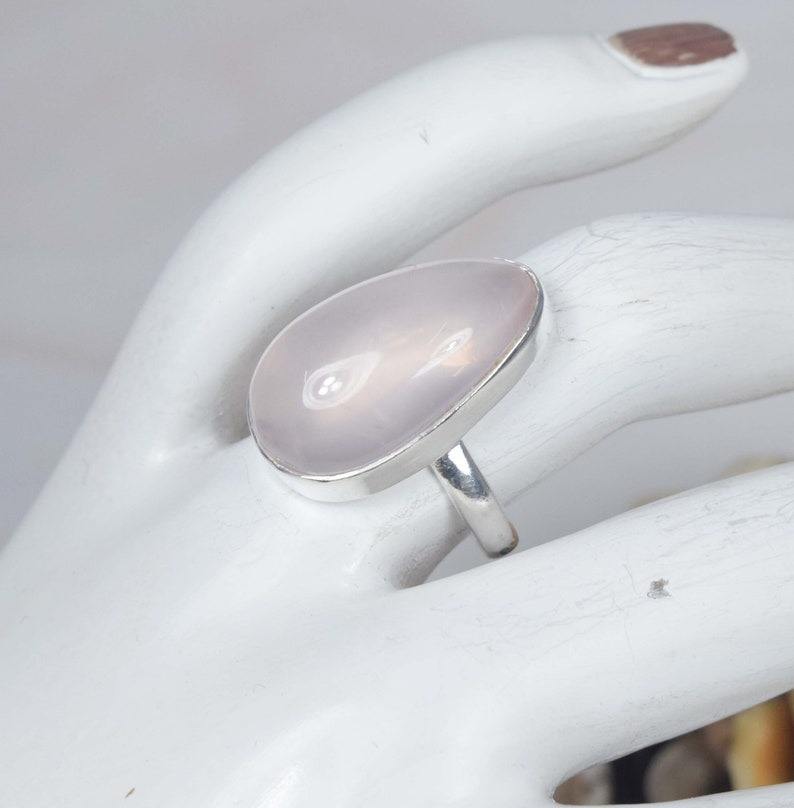 925 Sterling Silver Ring Rose Quartz 925 Sterling Silver Gemstone Ring January Birthstone Smooth Pear Gemstone Gift for Her