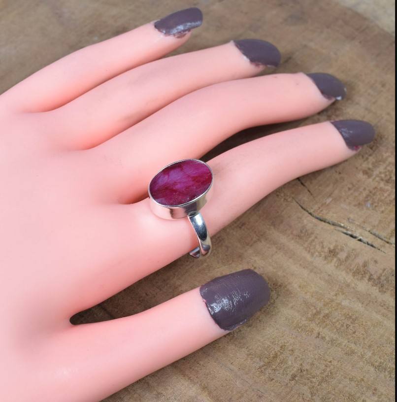 925 Sterling Silver Ring with Corundum Ruby Stone Fine Oval Ruby Cabs for Engagement or Gift Silver Ring
