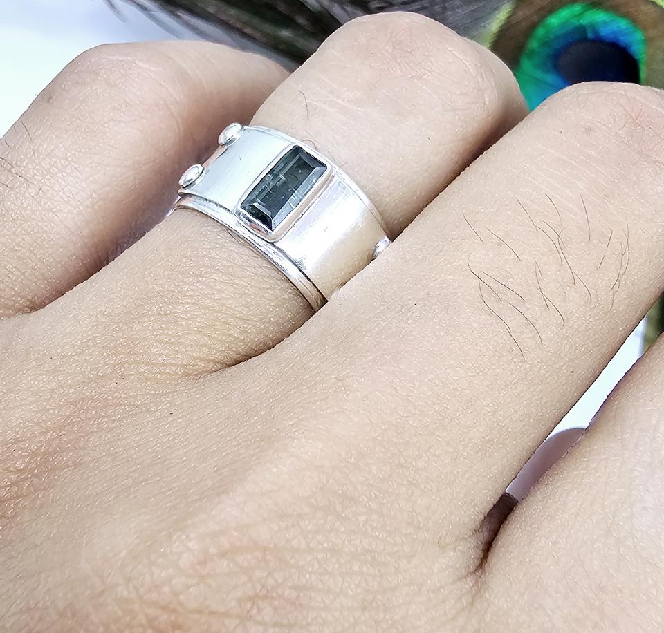 925 Sterling Silver Ring with Green Tourmaline Inlay Bezel Setting for Weddings