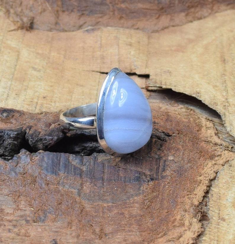 925 Sterling Silver Rings Blue Lace Agate Girls Fashion Statement Rings for Women Blue Lace Agate Jewelry Handmade Rings Jewelry