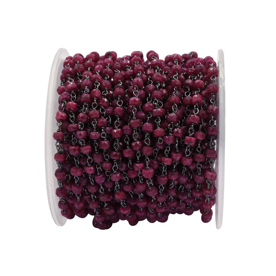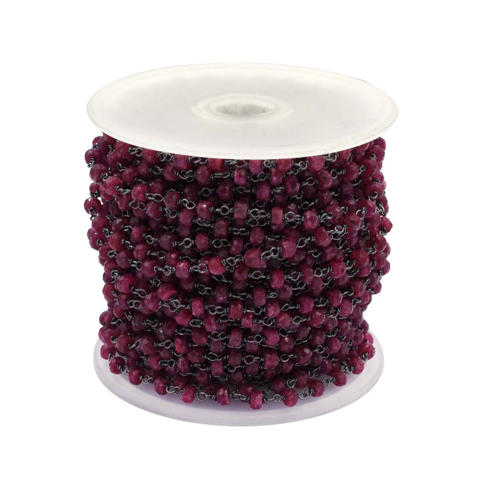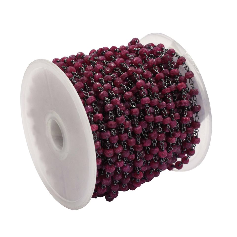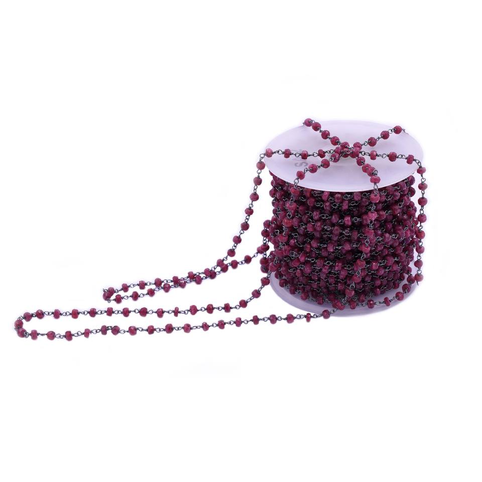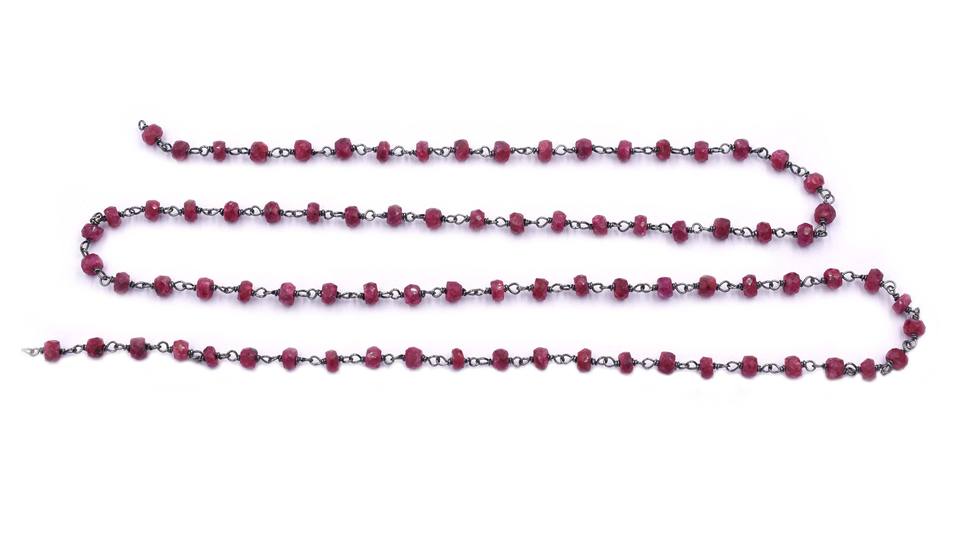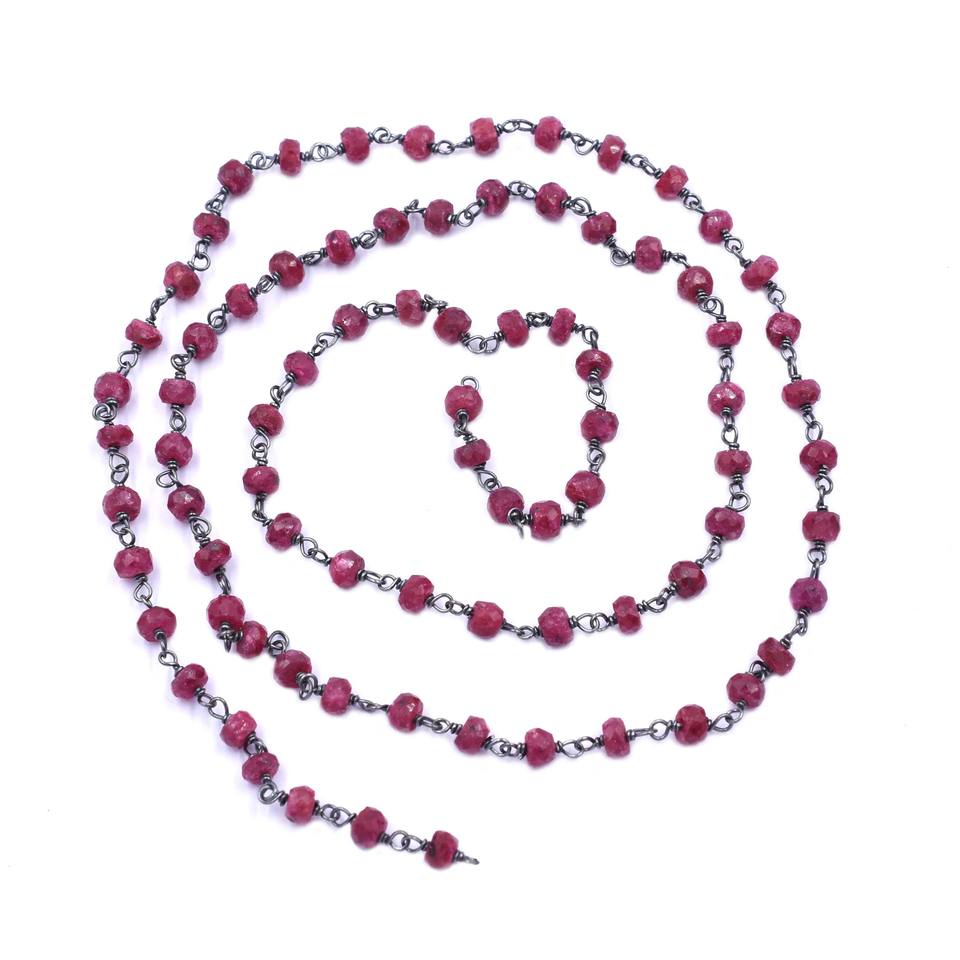 Product Name:Ruby Black Oxidized Sterling Silver Rosary Wire Wrap Chain