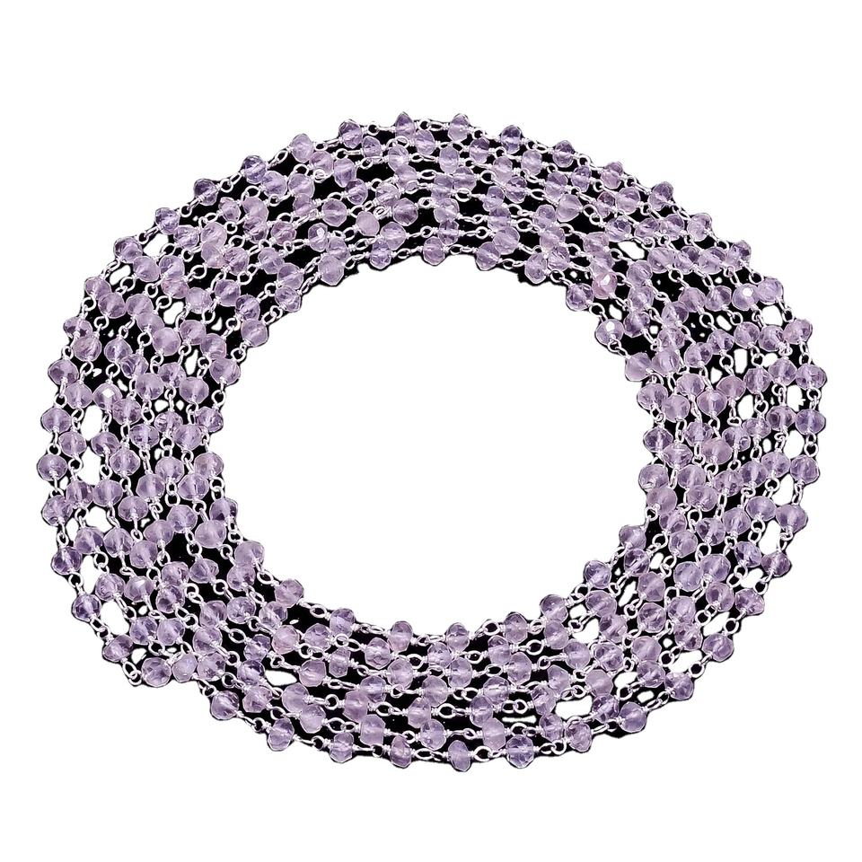 925 Sterling Silver Pink Rose Quartz Beaded Chain Rondelle Faceted for Rosary Jewelry Making & Components