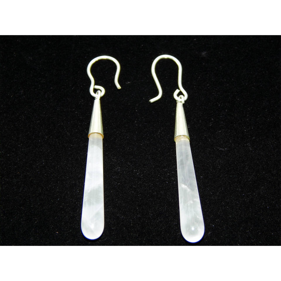 . 925 Sterling Silver & Rose Quartz Drop Dangle Earrings