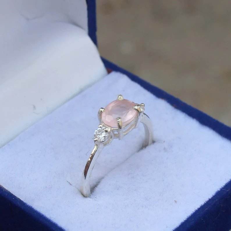 925 Sterling Silver Rose Quartz Solitaire Ring Classic Design with Gold Plating Romantic Oval Cut for Wedding Engagement Party