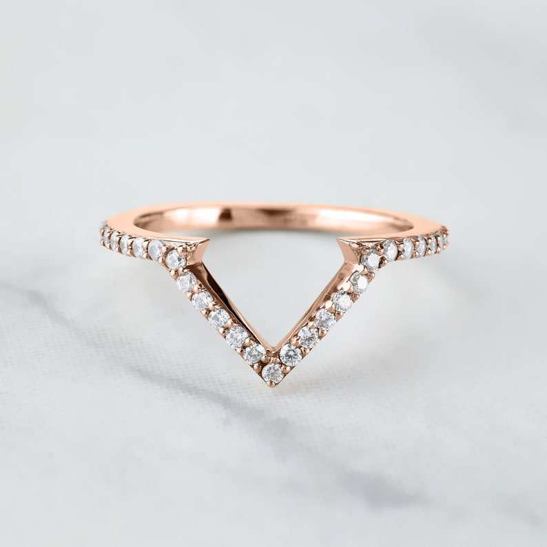 925 Sterling Silver Round CZ Kite Cut Engagement Ring Enhancer Guard Chevron V Shape Stacking Dainty Promise Anniversary Band