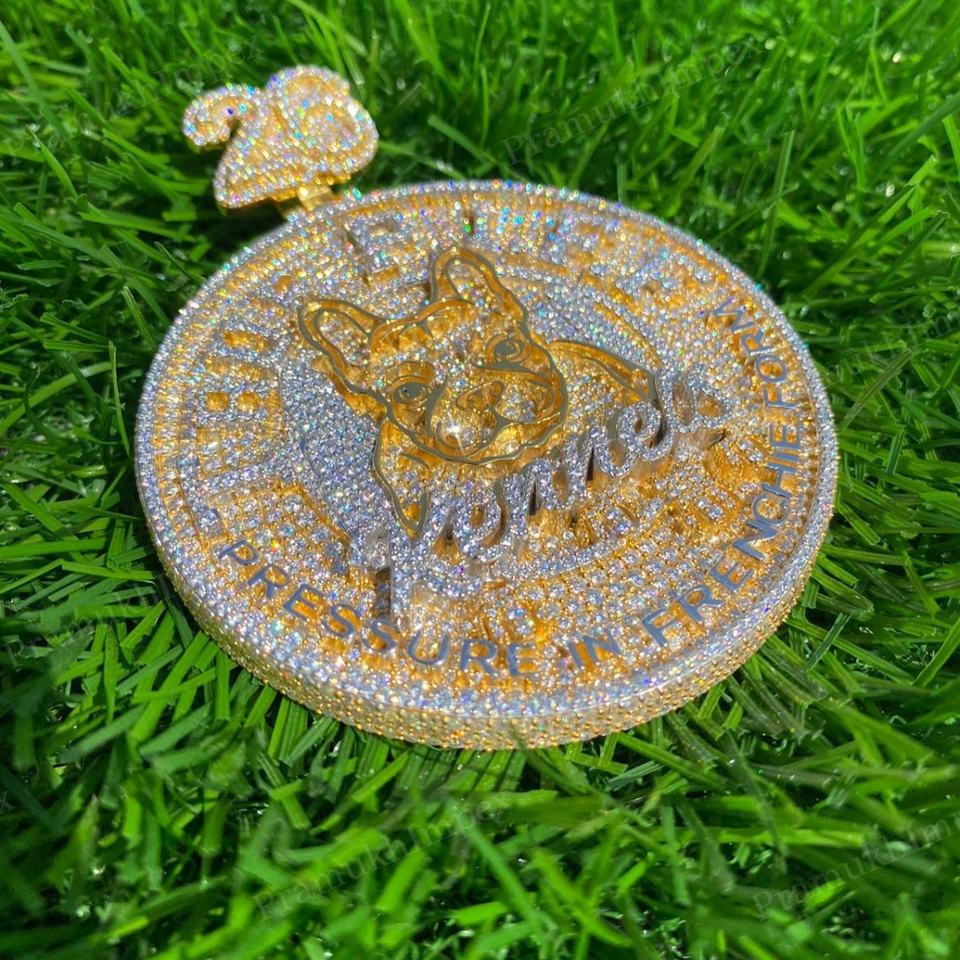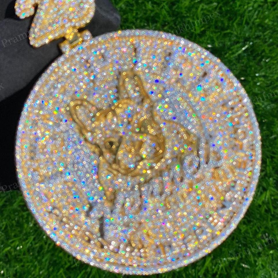 Custom 925 Sterling Silver VVS Moissanite Diamond Pendant Yellow Gold Plated with Ice Pass Diamond Test for Party Men Jewelry