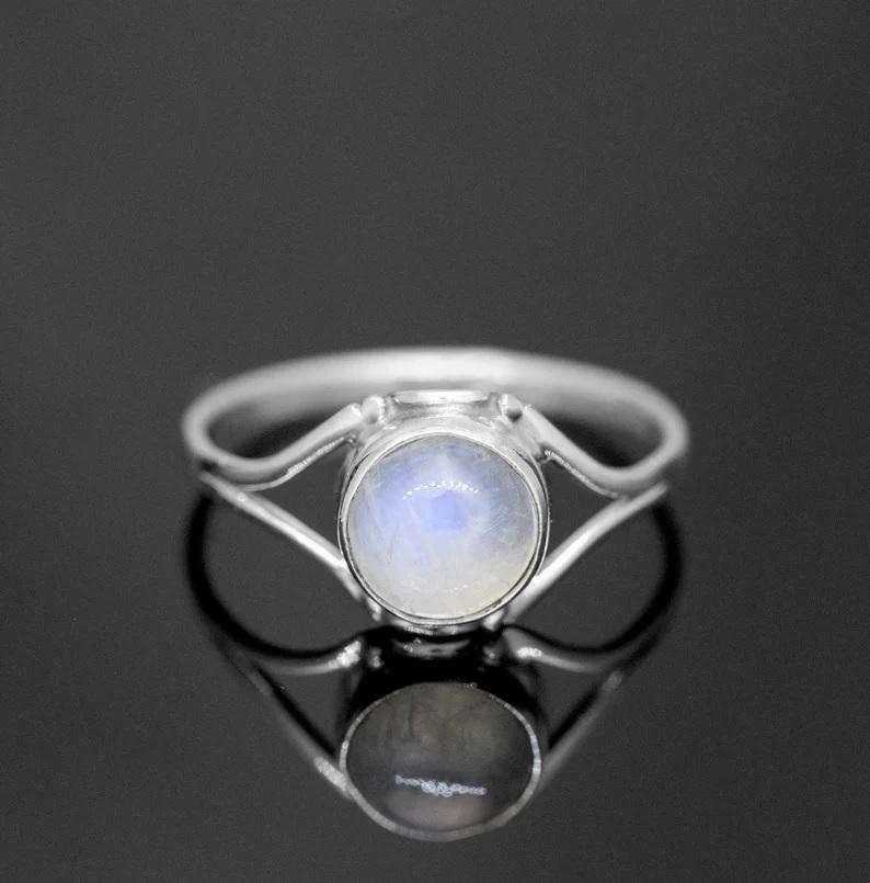 925 Sterling Silver Round Moonstone Crystal Ring for Women Handmade Gemstone Jewelry Elegant Ladies Ring Perfect Gift for Her