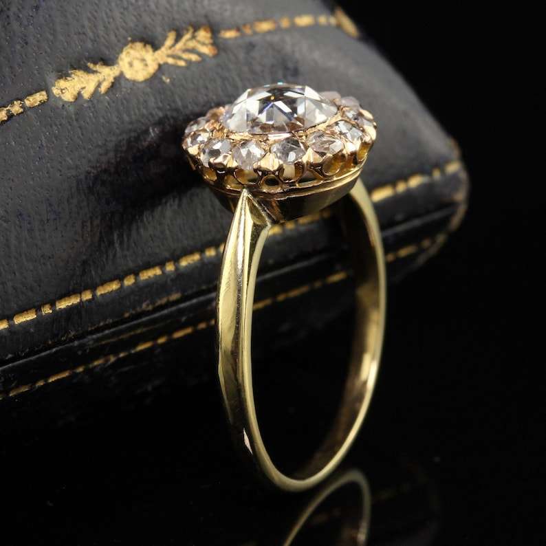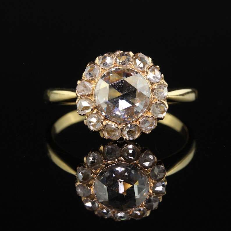 925 Sterling Silver Round Rose Cut Engagement Ring Yellow Plated Original Moissanite Diamond Halo Cluster Original Fine Jewelry