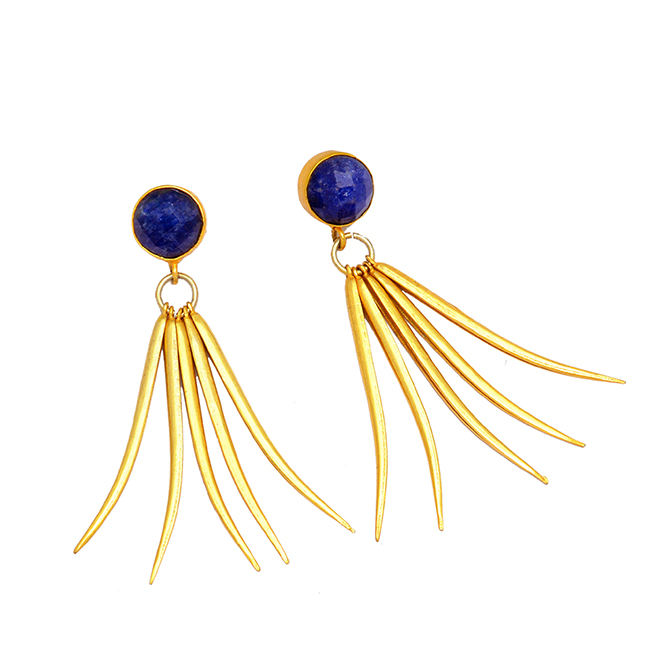 925 Sterling Silver Dangle Earrings with Sapphire Gemstone Gold Plated Spikes for Party & Gift Wholesale Manufacture Jewelry