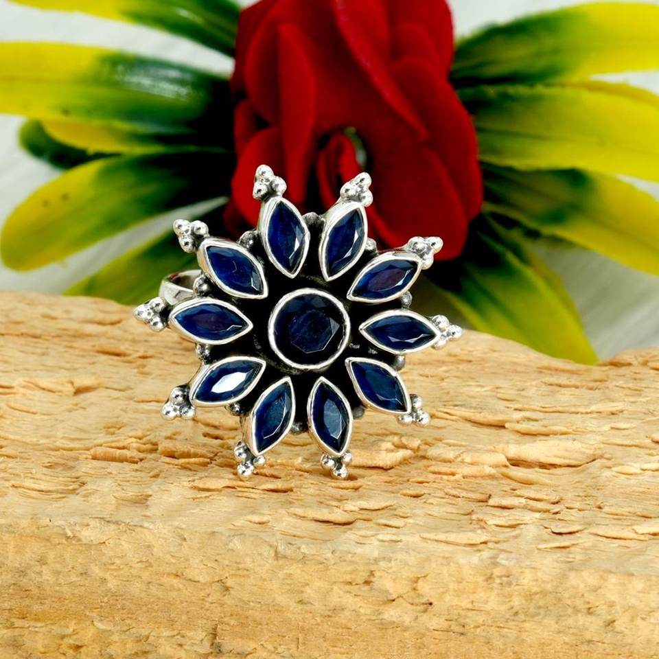 925 Sterling Silver Sapphire Ring Natural Blue Gemstone Wedding or Anniversary Gift for Women Adjustable Fine Ring-R0143-GS