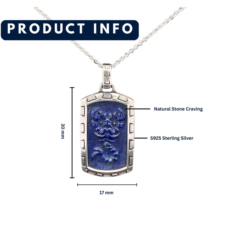 925 Sterling Silver Scorpion Pendant with Lapis Fine Round Charm for Men