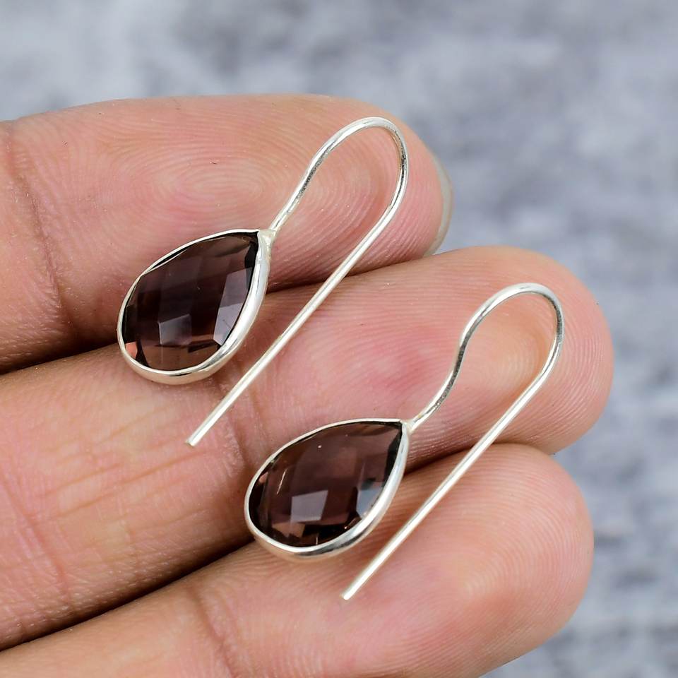 925 Sterling Silver Smoky Quartz Pear Shape Earrings for Women Statement Wedding Gift with Wire Earrings Featuring a Main Pearl