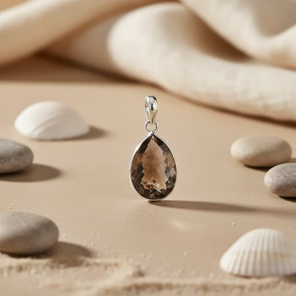 925 Sterling Silver Smoky Quartz Teardrop Pendant Necklace Trendy Geometric Design Gold Gift for Diamond Jade Agate Enthusiasts