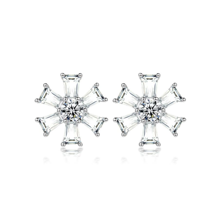 925 Sterling Silver Snowflake Shape Geometric Trendy Engagement Minimalist Luxury Cubic Zircon Stone Stud Earrings Women