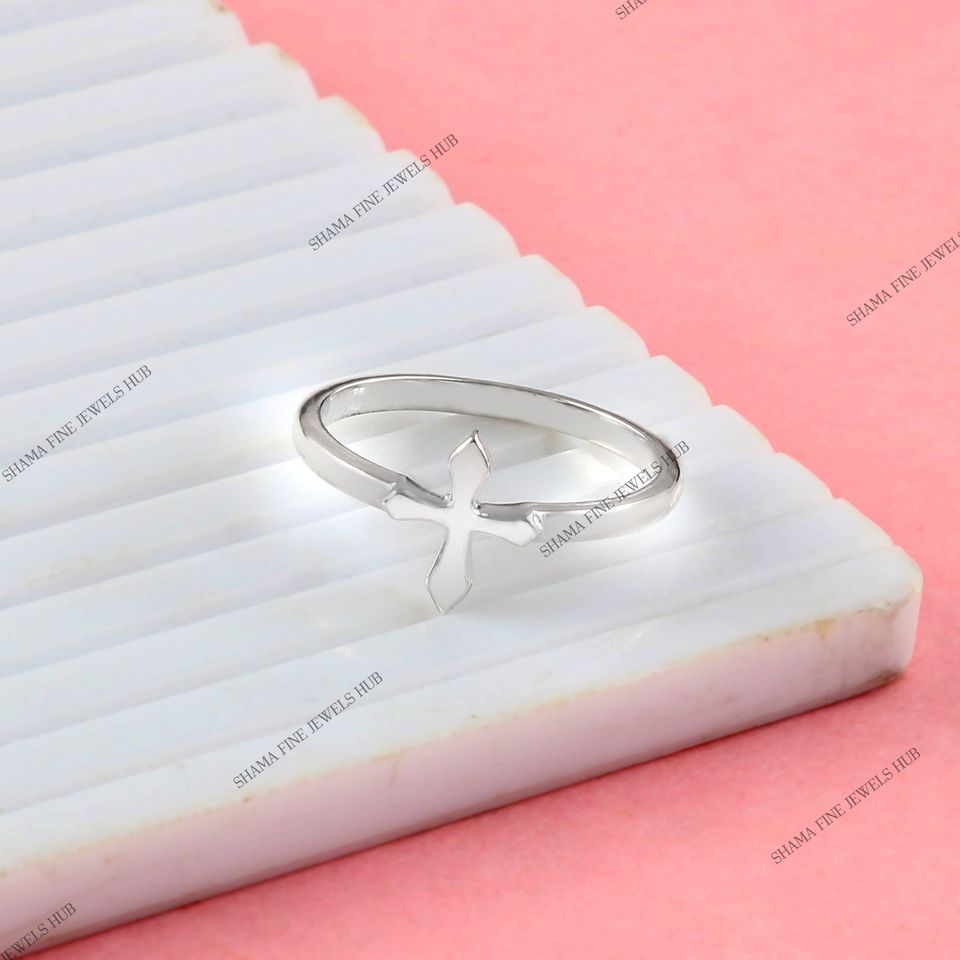 925 Sterling Silver Solid Jesus Cross Religious Minimalist Ring Christian Jewelry Cross Silver Ring for Women