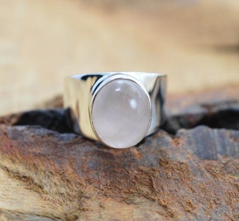 925 Sterling Silver Spinner Ring Wedding Pink Quartz Gemstone Ring January Birthstone Handmade Jewelry Gift for Christmas