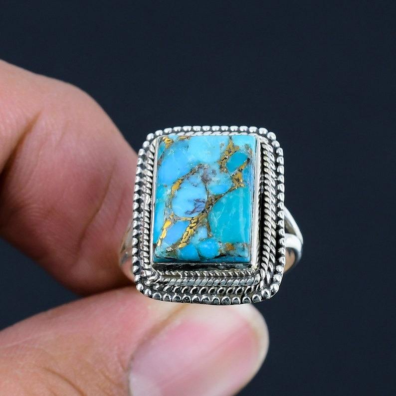 925 Sterling Silver Spinner Turquoise Ring Solid Handmade Gemstone Ring Wedding Gift Fine Sliver Jewelry Natural Promise Ring
