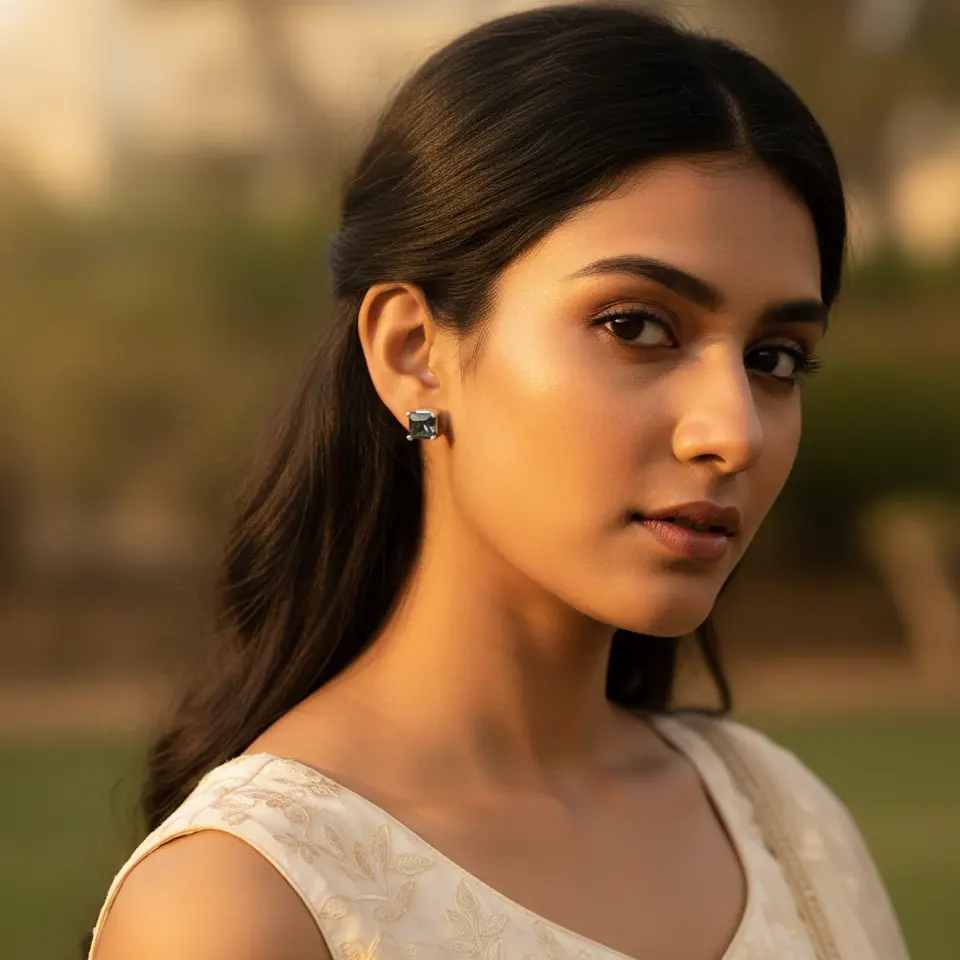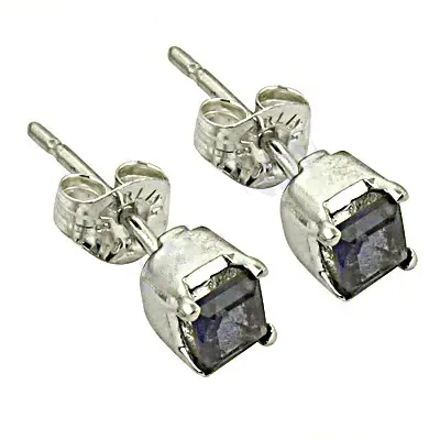 925 Sterling Silver Square Cut Sapphire Stud Earrings with Emerald Cut Diamond Rose Gold Plated Trendy Style Gold Jewelry