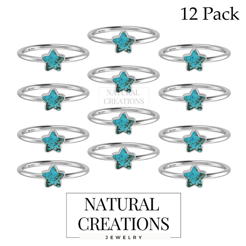 925 Sterling Silver Stackable Ring Bezel Setting Turquoise Star Shape Natural Slice Fancy Trendy Fashionable Unisex
