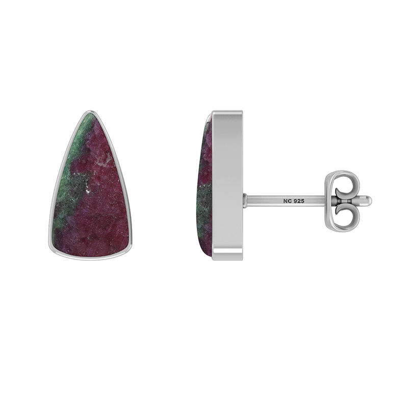 925 Sterling Silver Stud Earrings Ruby Zoisite Round Bullet Trillion Bezel Setting Trendy Handmade Fashion Jewelry Gift Pack 3