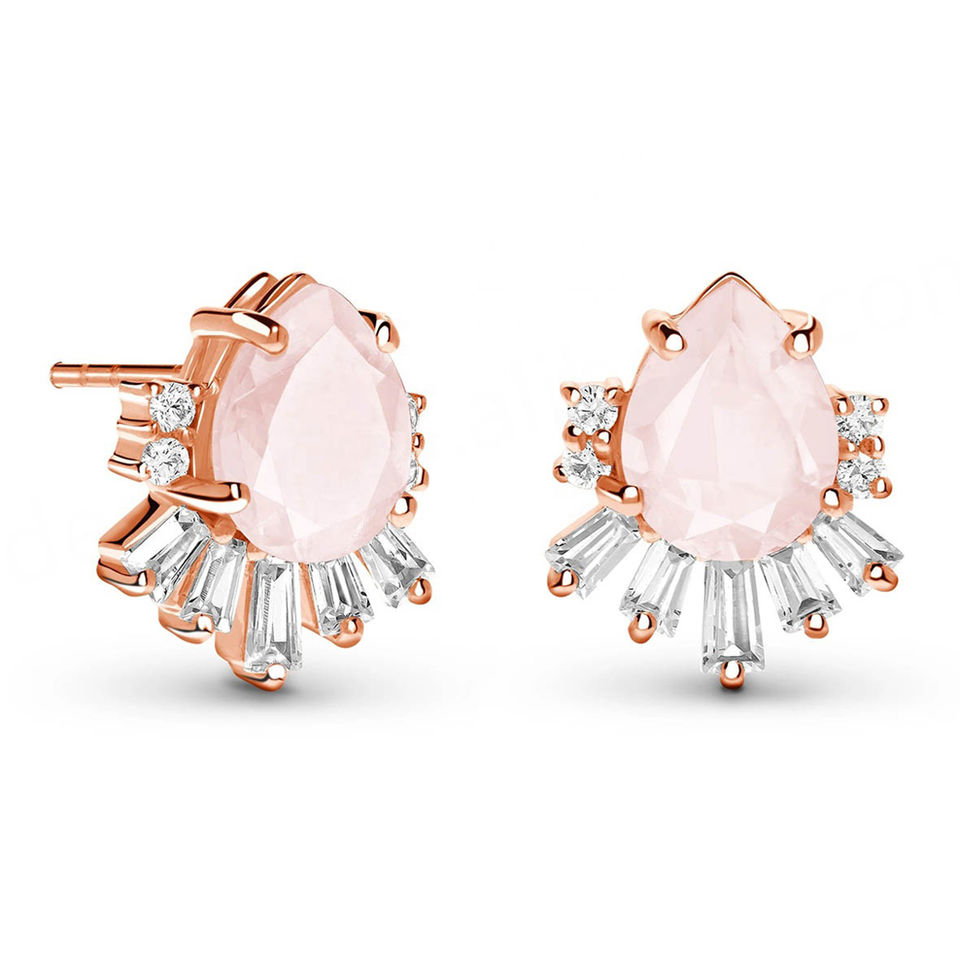 925 Sterling Silver Stud Earrings for Women Natural Rose Quartz White Topaz Pear Cut with Trendy Heart Shape Christian Jewelry