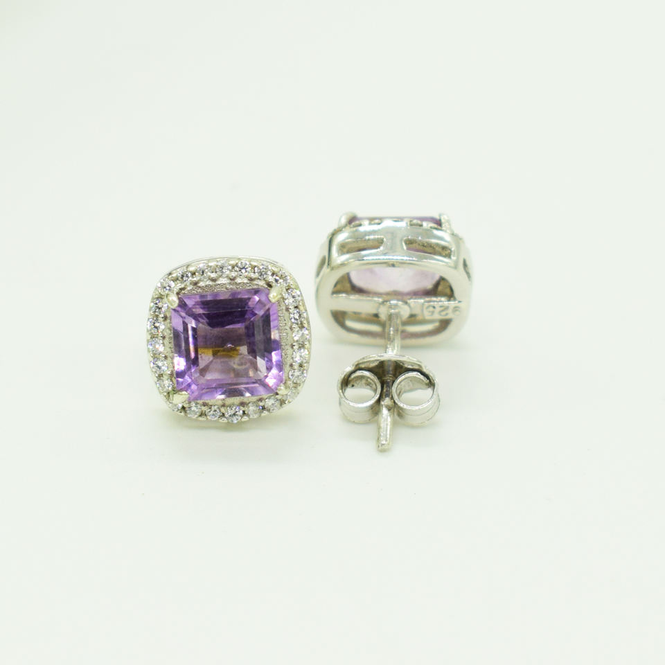925 Sterling Silver Studs New Arrivals Cubic Zirconia Dainty Earrings Amethyst Gemstone Christmas Jewelry Best Wholesaler
