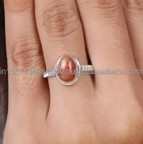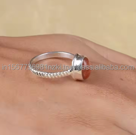 925 Sterling Silver Sunstone Ring Boho Style Solitaire Crystal Handmade Ring Birthday Gift for Sister for Parties Woman Rings