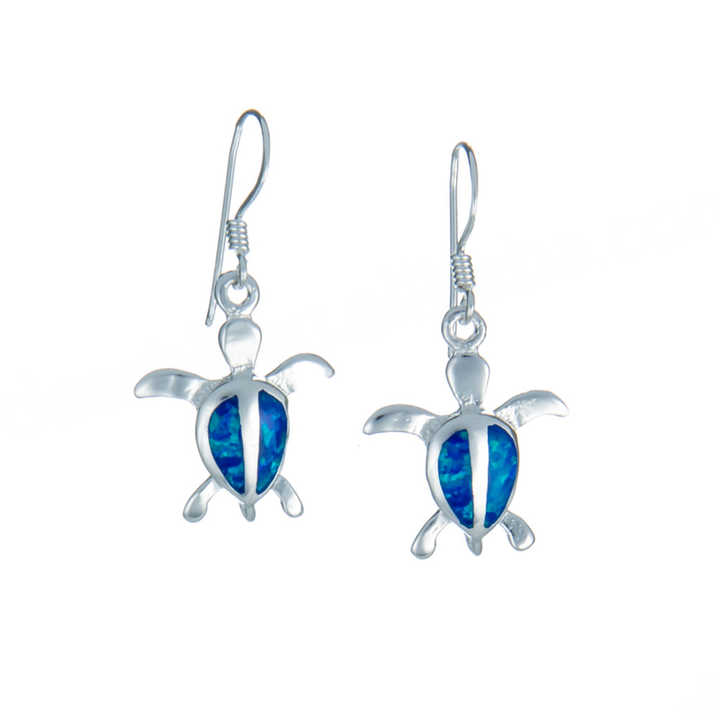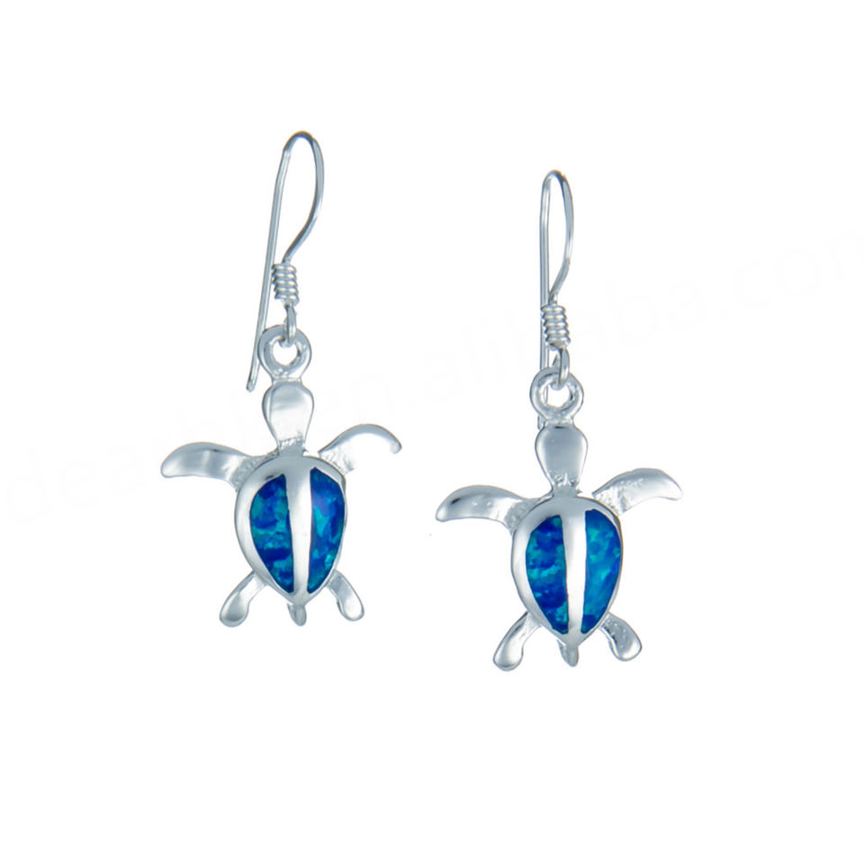925 Sterling Silver Synthetic Blue Fire Opal Stone Jewelry Stud Earrings Turtle Sea Life Earrings