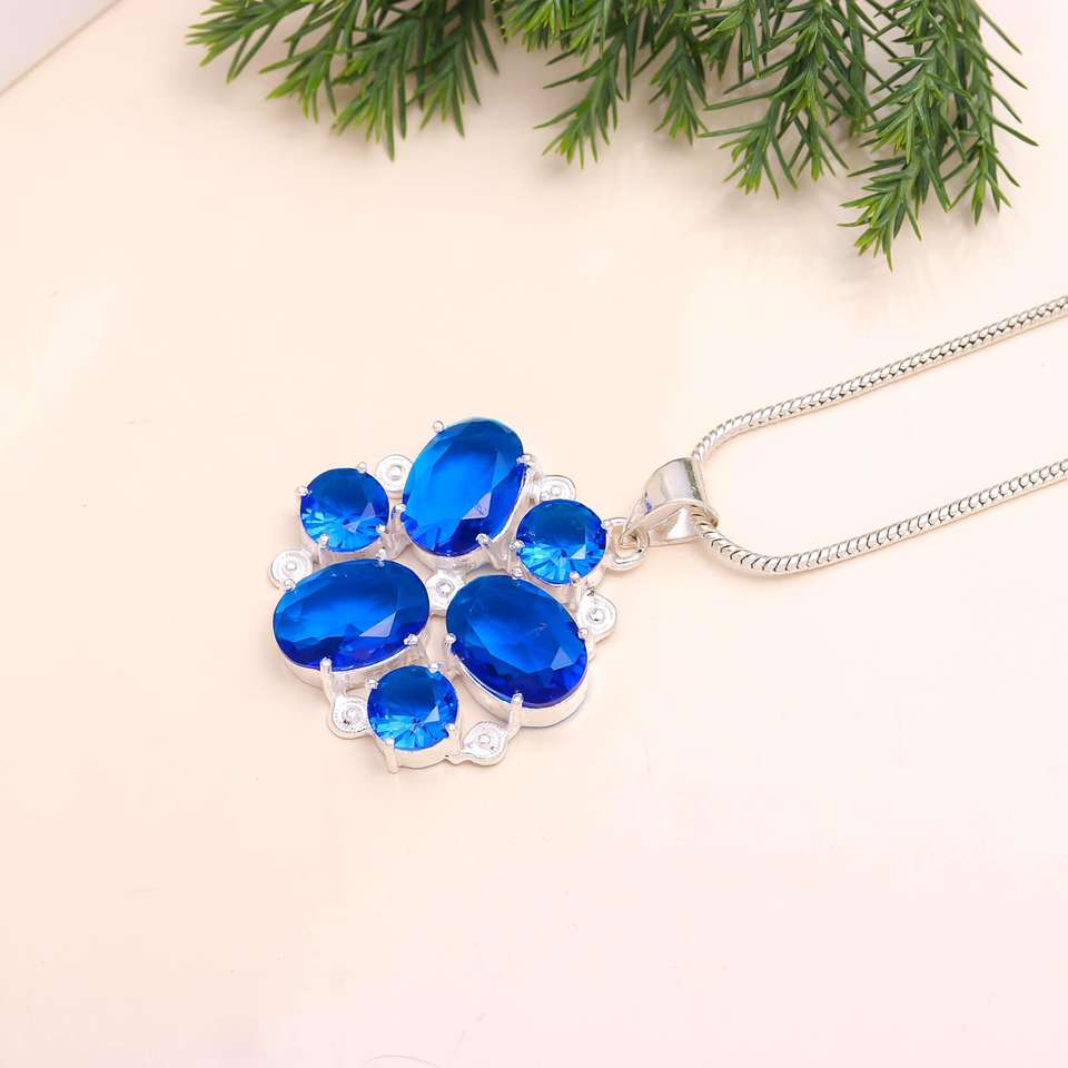 925 Sterling Silver Tanzanite Gemstone Link Chain Necklace 18 Inch Long Silver Plated Minimalist Women's Party Jewelry