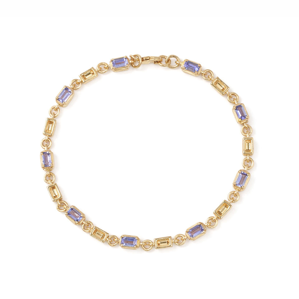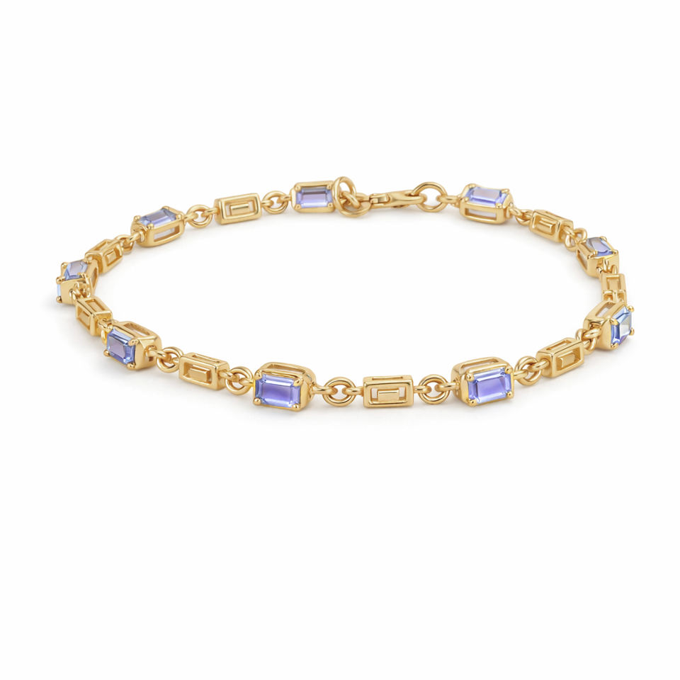 925 Sterling Silver Tanzanite Octagon Stone Charm Bracelet with Blank Links Gold & Rhodium Plated