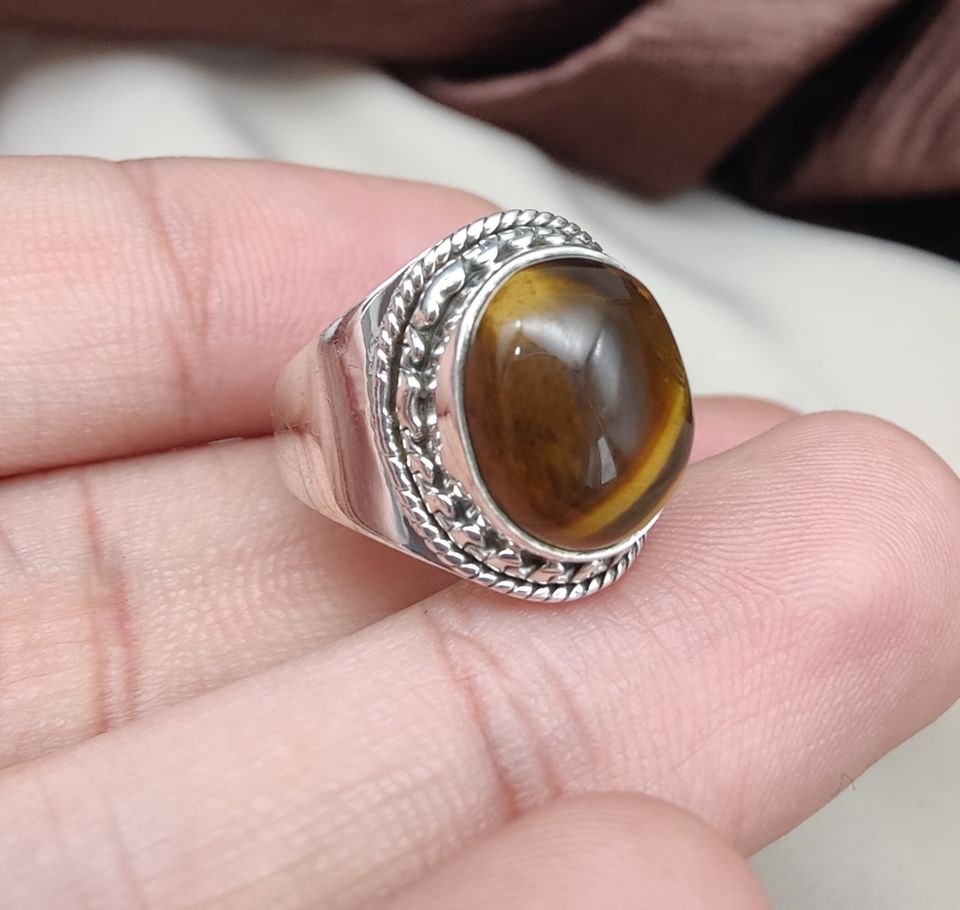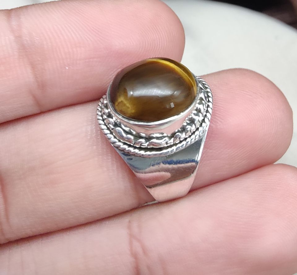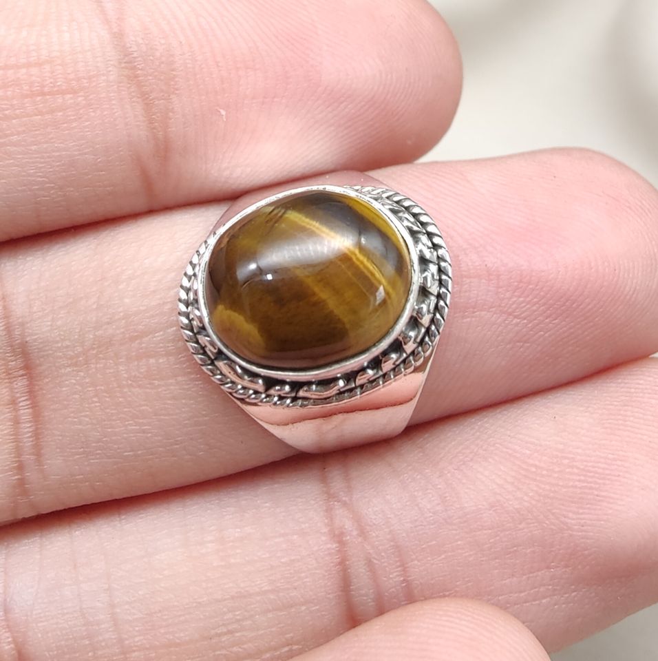925 Sterling Silver Tiger Eye Bezel Setting Wedding Ring Oval Cabochon Vintage Rope Handmade Natural Gemstone Jewelry Wholesale