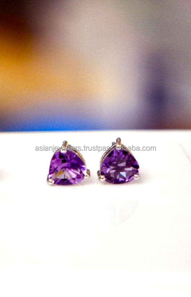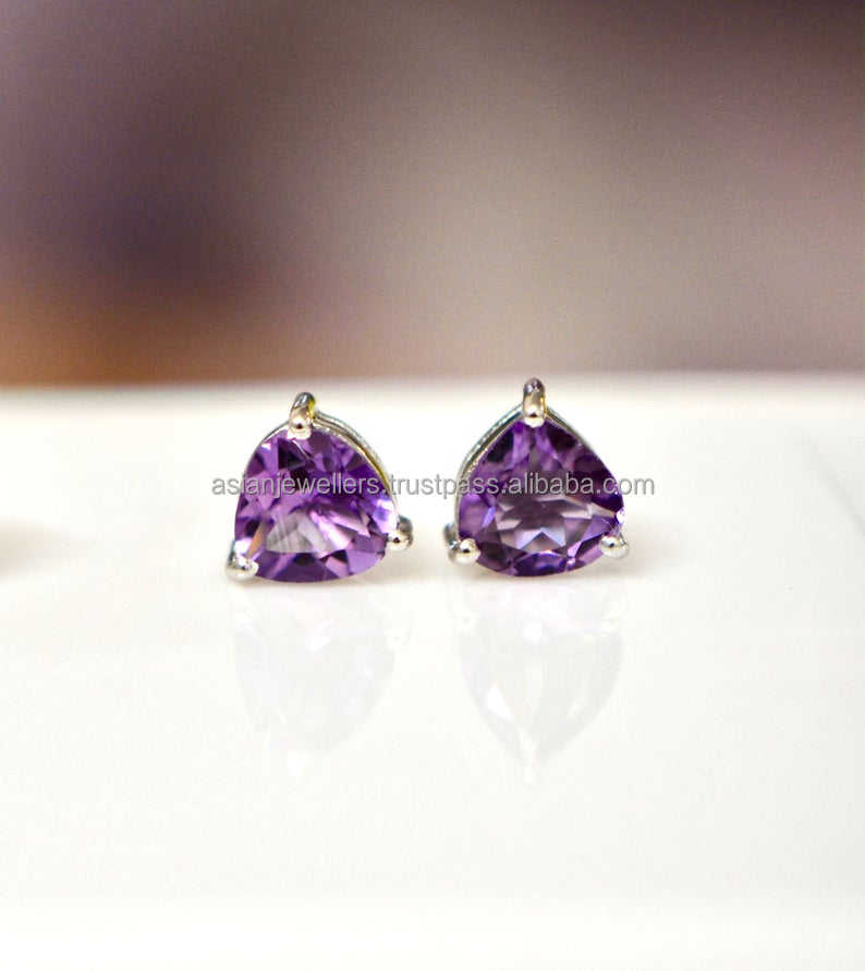 925 Sterling Silver Tiny Stud Earrings with Amethyst Quartz Gemstone Gold Vermeil Plating for Anniversary Party Gift
