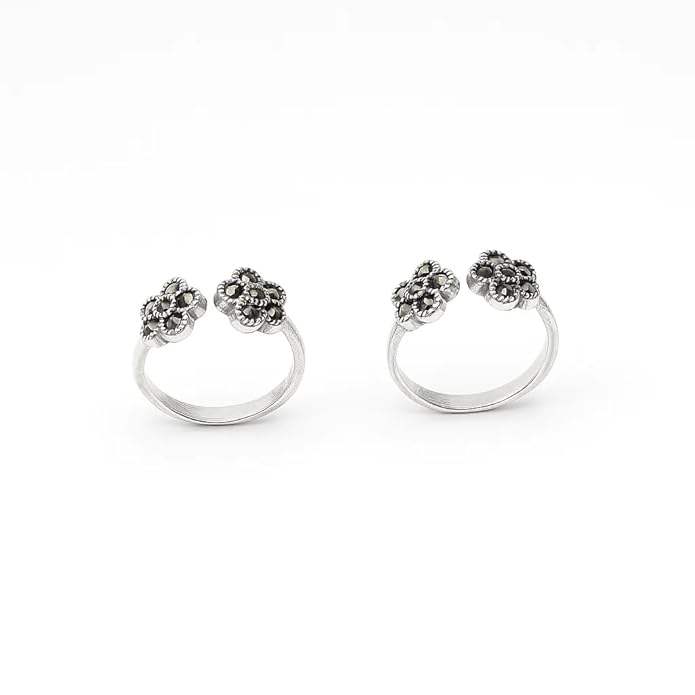 925 Sterling Silver Toe Ring for Women and Girls Adjustable Open Band Toe Ring with Floral Design Embellished with Genuine