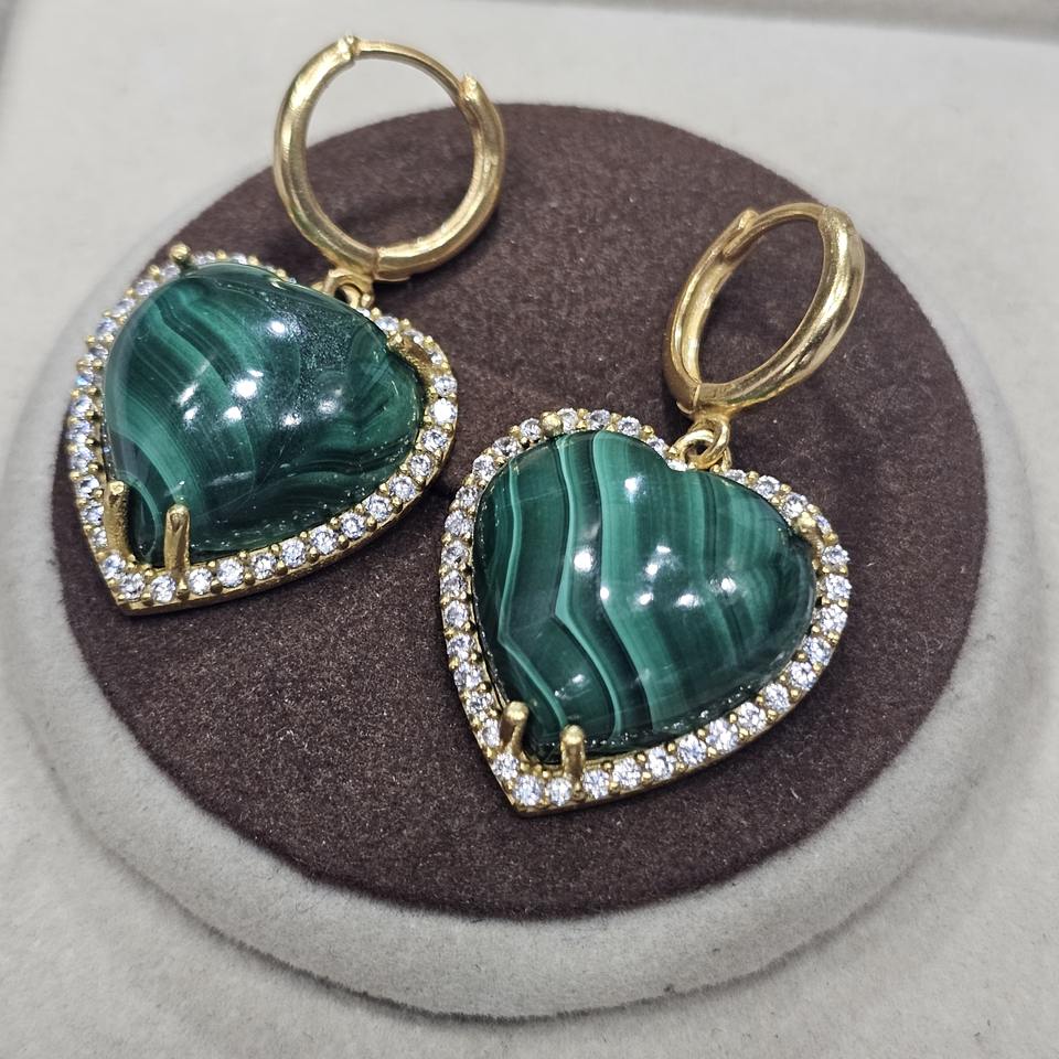 925 Sterling Silver Trendy Designer Stud Earring for Women Excellent Quality Nicely Cut Heart-Shaped Malachite Engagement Gift