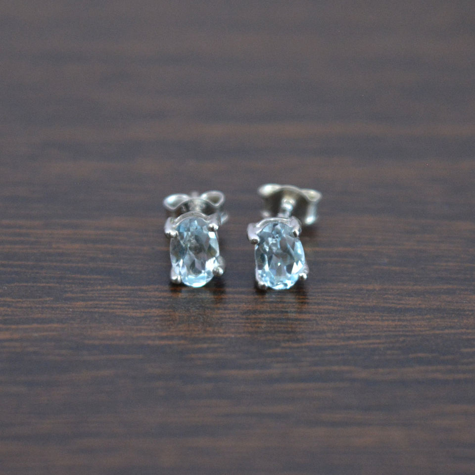 925 Sterling Silver Trendy Oval Shape CZ Stud Earrings Natural Blue Topaz Gemstone Gold Plated Weddings Party Wholesale Supplies