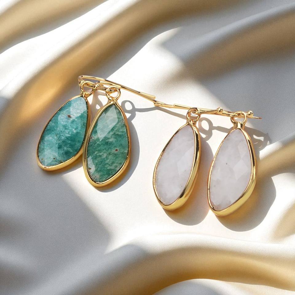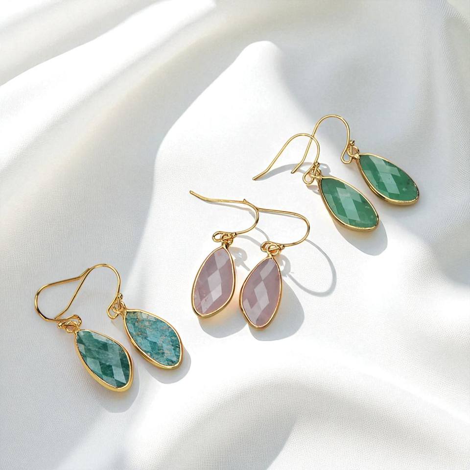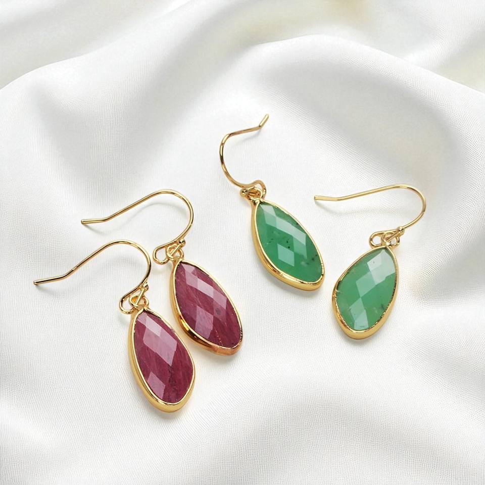 925 Sterling Silver Trendy Uneven Bezel Gemstone Drop Earrings Gold Plated Wedding & Party-Friendly Christian Wholesale