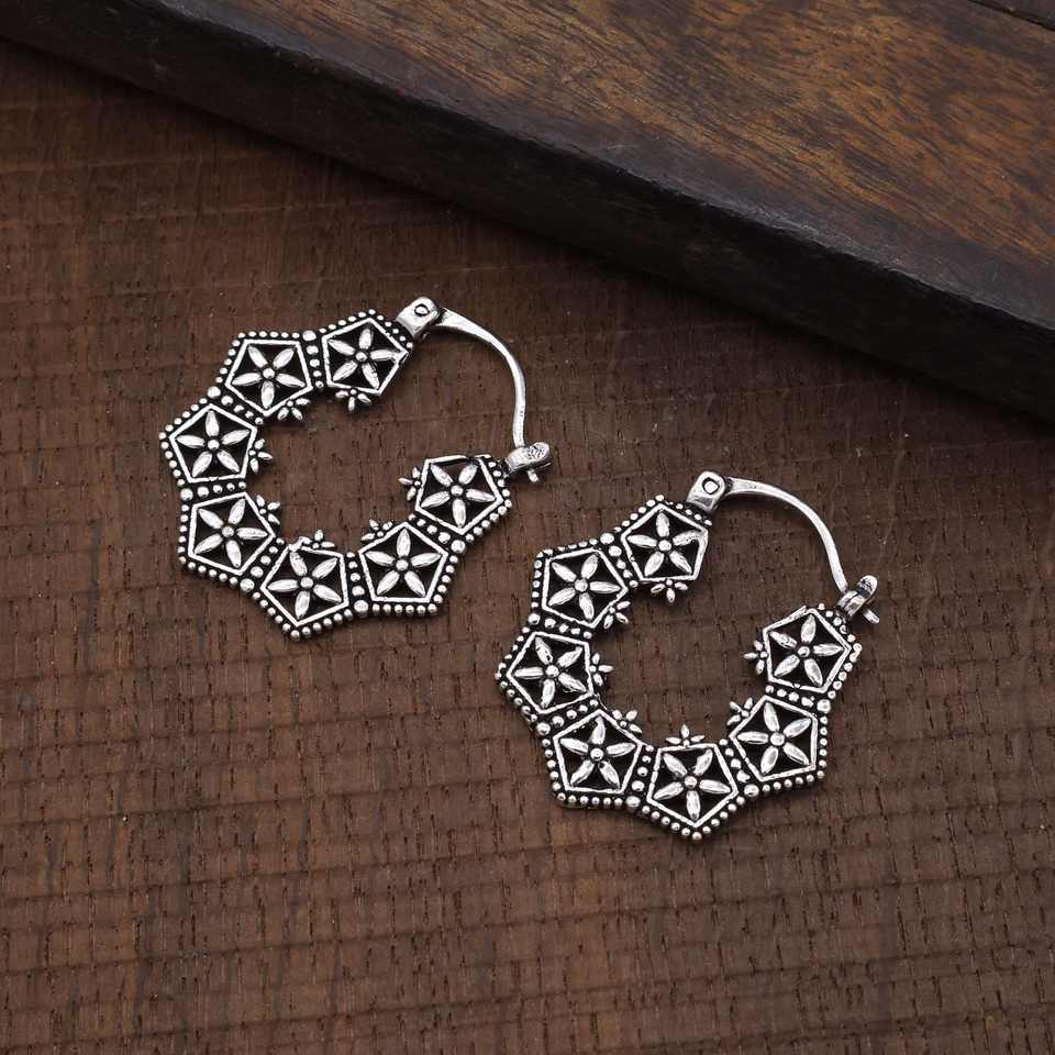 925 Sterling Silver Tribal Designer Hoops Fashionable Fine Earrings for Women Girls Ethnic Trendy Exclusive Gold Weddings Gifts