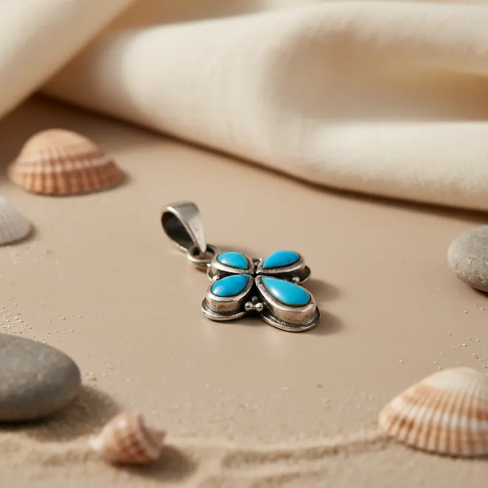 925 Sterling Silver Turquoise Flower Pendant Necklace Fashion Accessory for Women