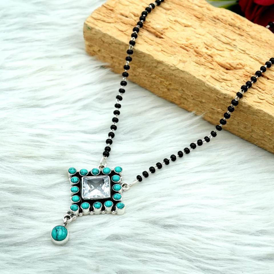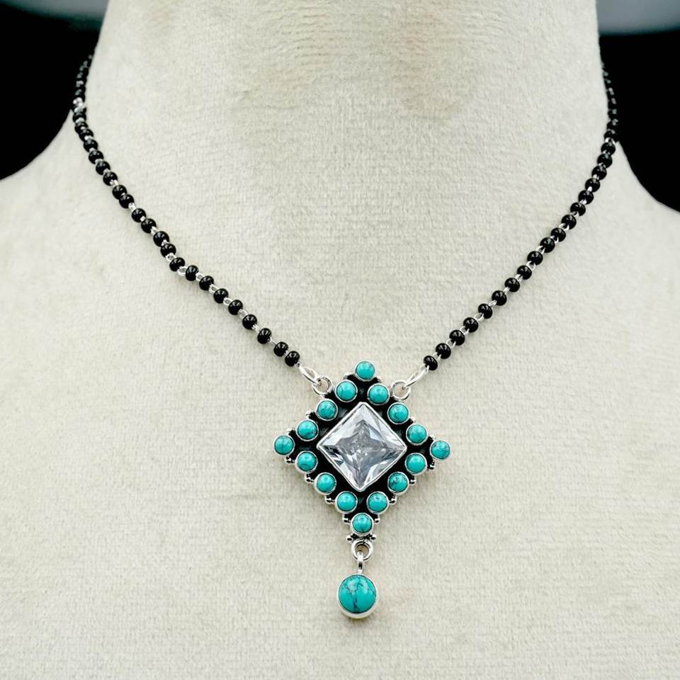 925 Sterling Silver Turquoise Necklace with Black Beads Traditional Indian Mangalsutra Style Fine Beaded Gift Necklace