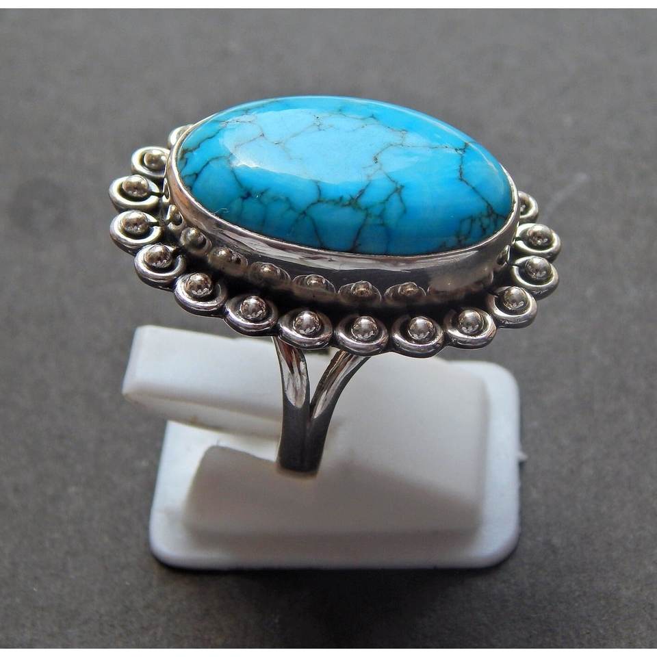 925 Sterling Silver Turquoise Ring Handmade Gemstone Cabochon IGI Certified Gift for Girls Women Turquoise Jewelry R0029-GS