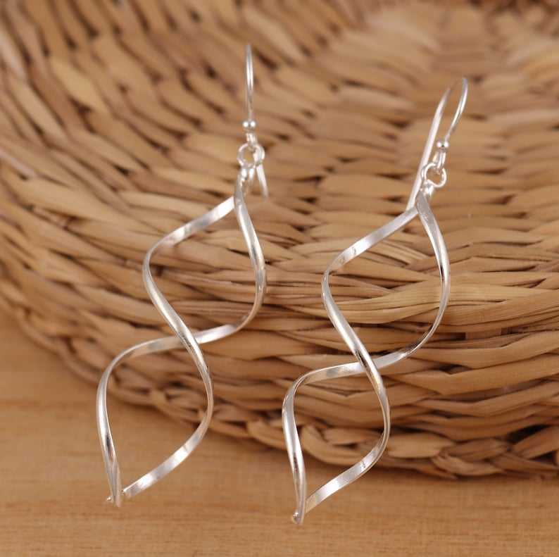 925 Sterling Silver Twisted Double Spiral Dangle Drop Dangly Earrings Minimalist Daily Wear Ear wires Jewelry Gifts for Women's