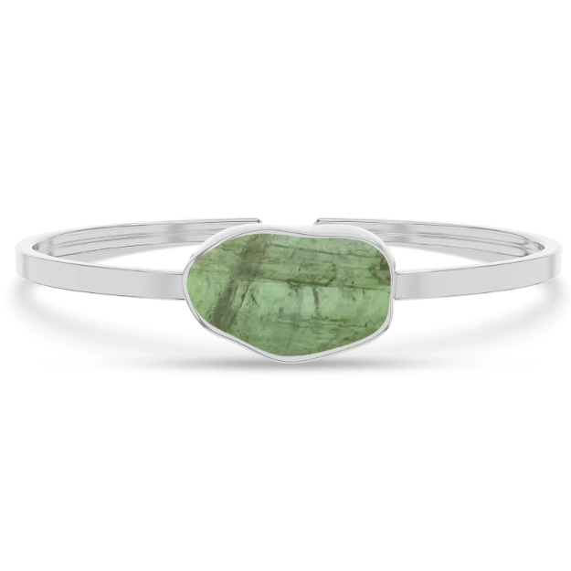 925 Sterling Silver Twister Bracelet High Finish Green Tourmaline Rough Shape Natural Bezel Setting Trendy Unisex Women Gift
