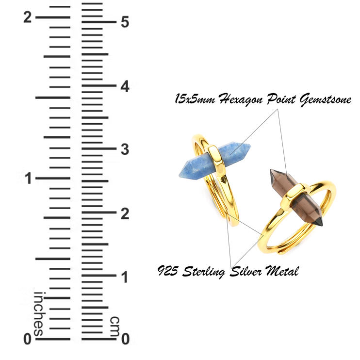 925 Sterling Silver Two Side Hexagon Point Amethyst Gemstone 15x5mm Adjustable Finger Ring Wholesale Jewelry for Women